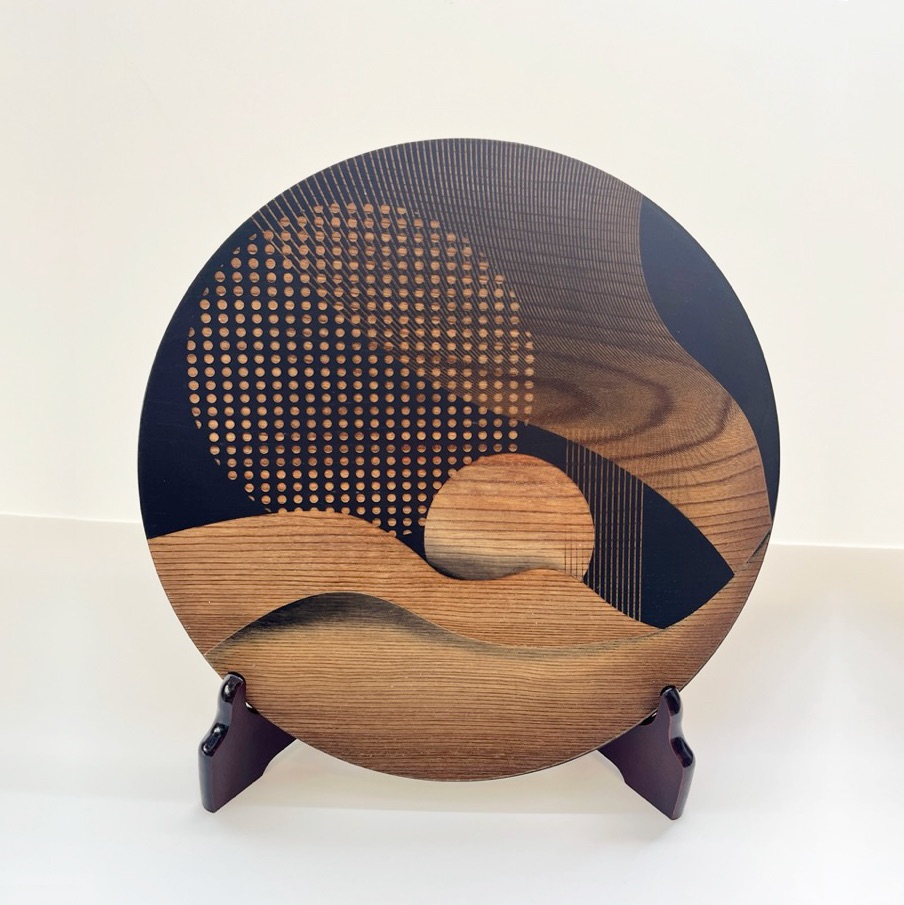 Kyoto Sansai Kobo X Mieko Matsumaru Laser Carved Wooden Large Plate.
